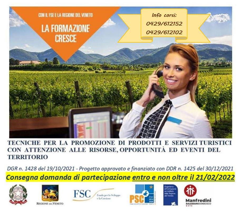 Il corso, completamente gratuito, in "TECNICHE PER LA PROMOZIONE DI PRODOTTI E SERVIZI TURISTICI CON ATTENZIONE ALLE RISORSE, OPPORTUNITA' ED EVENTI DEL TERRITORIO" è indirizzata a incrementare lo sviluppo del turismo enogastronomico nel territorio padovano: saper valorizzare le peculiarità enogastronomiche presenti nei Colli Euganei, promuovere eventi, musei del tipico, show coking, degustazioni che consentono il contemporaneo intersecarsi di arte, natura cibo e vino, lo studio e l'attuazione ad hoc di metodi e scienze di lancio dei singoli prodotti, intessere una preziosa rete di rapporti tra gli addetti del settore.