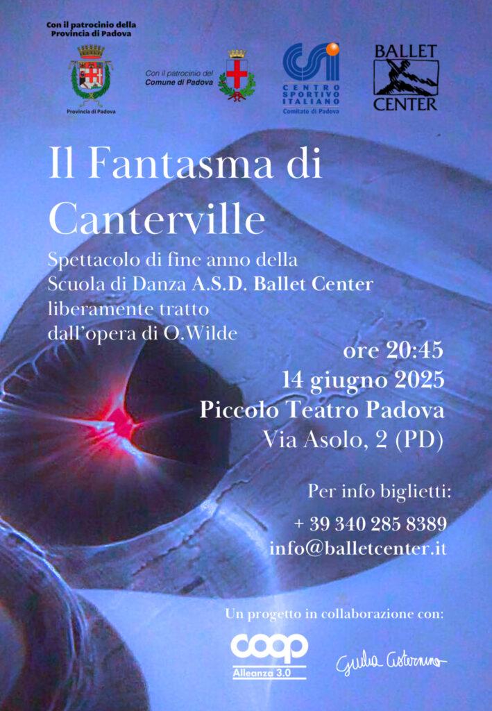 Sabato 14 giugno 2025, alle 20.45, presso il Piccolo Teatro a Padova, si svolge lo spettacolo di fine anno della Scuola di Danza A.S.D. Ballet Center "Il Fantasma di Canterville".