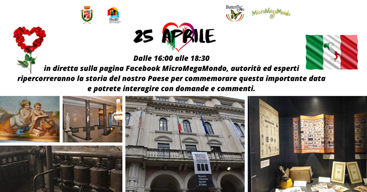 La Provincia di Padova commemorerà il 75esimo anniversario del 25 aprile con una diretta Facebook organizzata in collaborazione con Micromegamondo ed Esapolis. Al centro dell’evento, il Museo di Palazzo Santo Stefano, sede storica dell’Amministrazione provinciale che da alcuni anni ha aperto e reso accessibile al pubblico il rifugio antigas e un bunker antiaereo. L’appuntamento online inizierà dalle 16 e proseguirà fino alle 18.30 con link accessibile dalla pagina di Micromegamondo. All’evento parteciperà anche il presidente della Provincia di Padova Fabio Bui che interverrà sull’importanza storica di questo 25 aprile 2020.