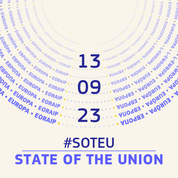 Mercoledì 13 settembre 2023 dalle ore 9.00 alle ore 12.00 la Presidente della Commissione europea Ursula von der Leyen tiene il tradizionale Discorso sullo Stato dell'Unione SOTEU in diretta streaming con la traduzione simultanea in tutte le 24 lingue ufficiali dell'Unione Europea.